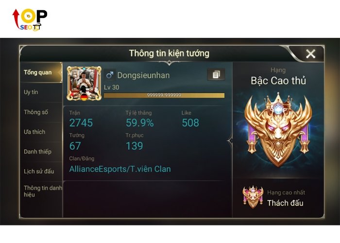 - Nick LQ VIP: ottatua8893 – Mật khẩu: ottatua9388